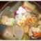 2の湯が沸騰したら3の豆腐と菜の花を入れ、塩で調味し最後に香りづけのしょうゆを入れたら完成です。